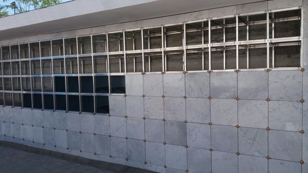 Il ripiano-soletta e le pareti che dividono i singoli ossari sono formate da pannelli di alluminio di vario spessore fissati sulle alette dei traversi. Il profilo anteriore viene realizzato con un profilo speciale, dotato di un’aletta anteriore sporgente 15 mm, idonea per l’appoggio ed il sostegno della lapide in marmo. Le dimensioni minime interne, 30bx70px30h, rispondono a quanto prescritto dal Regolamento di Polizia Mortuaria DPR n° 285 del 10.9.1990 Circ. Min. Sanità n° 24 del 24.6.1993.