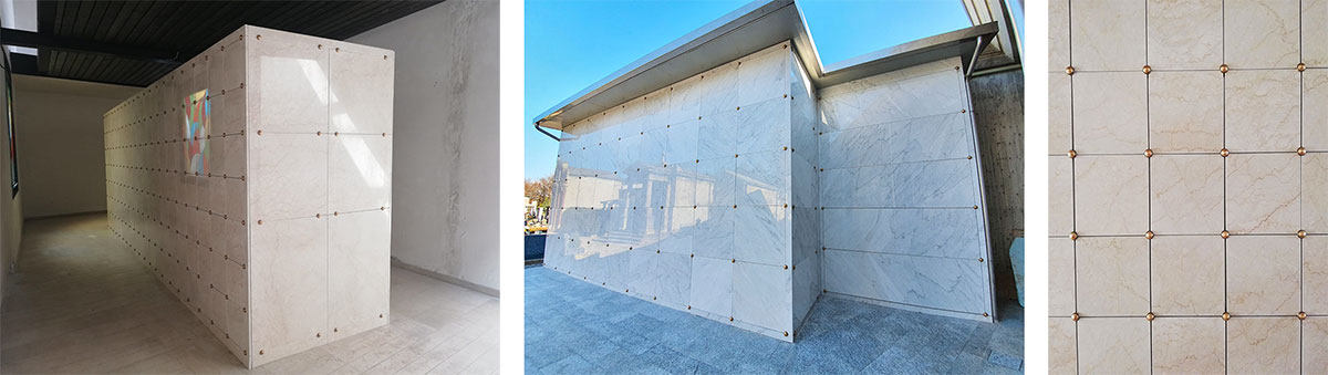 Operai specializzati, altamente qualificati e provvisti di ogni genere di dispositivi di sicurezza, in pochi giorni sono in grado di allestire e consegnare strutture finite altamente performanti e complete di tutte le rifiniture necessarie (rivestimenti lapidei, copertura, impianto voti) provvedendo anche ad un'attenta pulizia finale del cantiere.